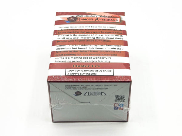 This product is a factory sealed 2021 Historic Autographs Famous Americans Blaster Box